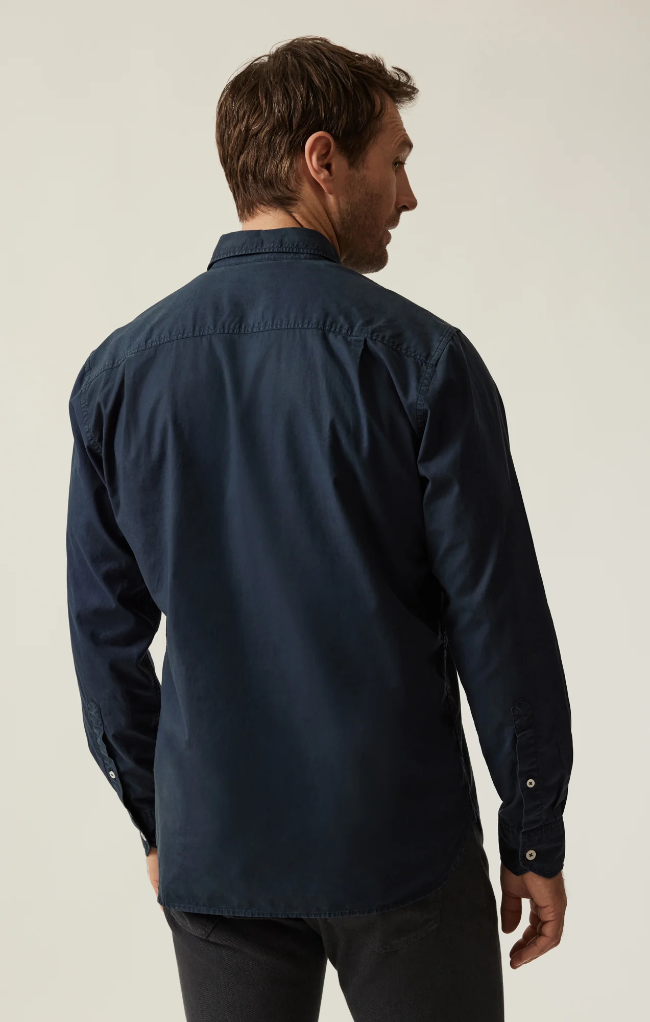 This luxurious twill shirt is made from a super-soft fabrication with a carefully tailored fit. Worn loose or tucked in, a shirttail hem creates a smooth, universally flattering silhouette. Crafted in an elegant navy hue ideal for all season, this shirt is both versatile and polished.